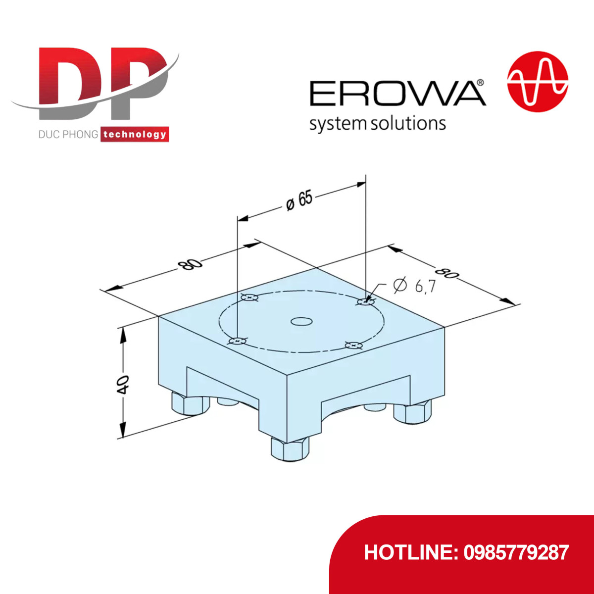 Ứng dụng: Dùng để gá điện cực (mount electrodes) và chi tiết gia công (workpieces) có diện tích đế lớn hơn 70 mm.