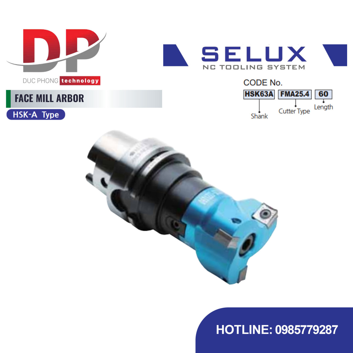 Trục gá dao phay mặt chuôi HSK-A Series HSK Shank - Selux (FACE MILL ARBOR) HSK-A TYPE là cán gá chuyên dụng, dùng để lắp đầu dao phay mặt, và được thiết kế để kết nối với trục chính máy thông qua chuôi HSK-A Shank.