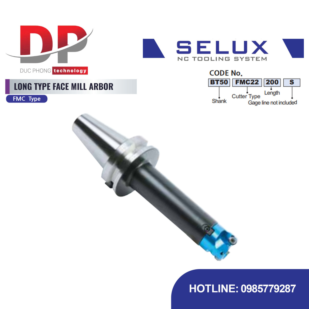 Trục gá dao phay mặt cổ dài loại FMC Series BT Shank - Selux (LONG TYPE FACE MILL ARBOR) FMC TYPE là một dụng cụ chuyên dụng, sử dụng chuôi BT Shank, được thiết kế để lắp đặt đầu phay mặt phẳng và mở rộng khả năng tiếp cận của dao cụ. Loại trục gá này được tối ưu hóa cho các hoạt động gia công sâu và phức tạp trên máy Machining Center.