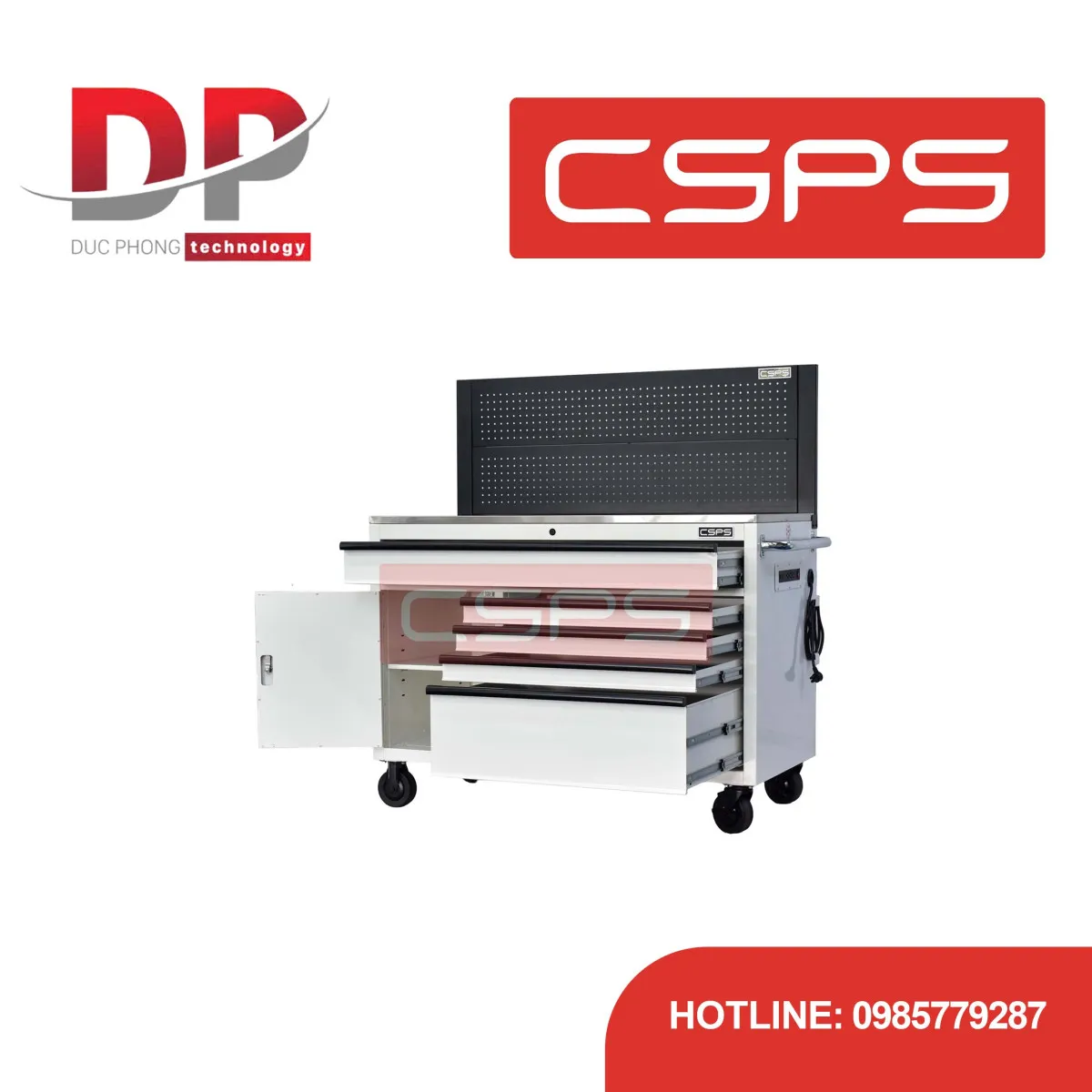 Tủ dụng cụ CSPS 132cm 5 hộc kéo màu trắng bóng là tủ đựng dụng cụ chuyên dụng cho xưởng cơ khí, garage, cửa hàng sửa chữa và khu bảo trì thiết bị, thiết kế để tối ưu sắp xếp và lưu trữ bộ đồ nghề, phụ kiện và thiết bị trong môi trường kỹ thuật chuyên nghiệp. Sản phẩm được sản xuất theo tiêu chuẩn Mỹ với vật liệu chính là thép ASTM A1008 và lớp sơn tĩnh điện màu trắng bóng bền bỉ, chịu được va đập, ăn mòn và trầy xước trong môi trường làm việc nặng.